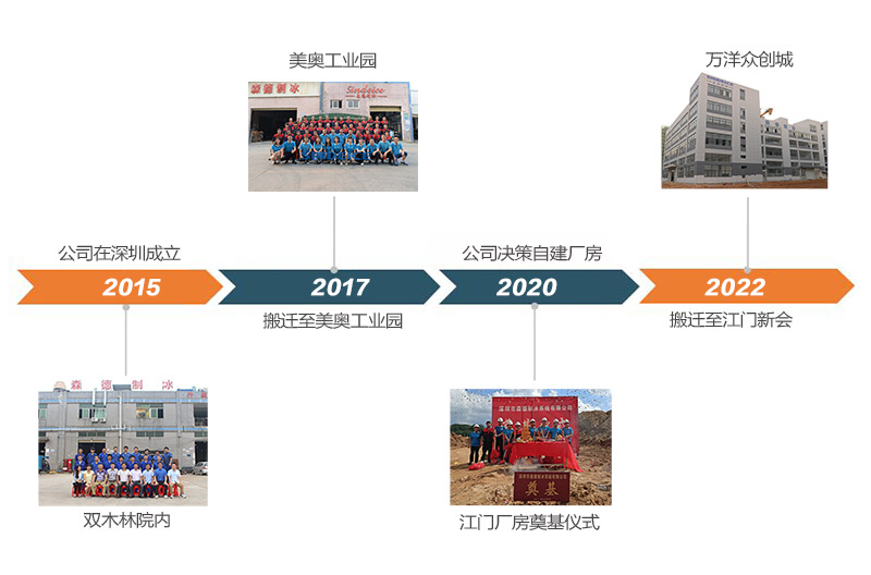 森德制冰2015年9月成立,歷經7年發展,公司不斷發展壯大,先后從深圳松崗雙木林搬遷至松崗美奧工業園,農歷2022年底公司再次搬遷至江門新會,現有序恢復生產中。