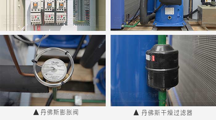 4.采用一線品牌制冷配件:德國比澤爾、丹麥丹佛斯、美國谷輪、臺灣漢鐘壓縮機、意大利萊富康等知名壓縮機,丹佛斯電磁閥、膨脹閥、干燥過濾器、美國愛默生膨脹閥等制冷配件,片冰機質量可靠,故障率低,制冰效率高。